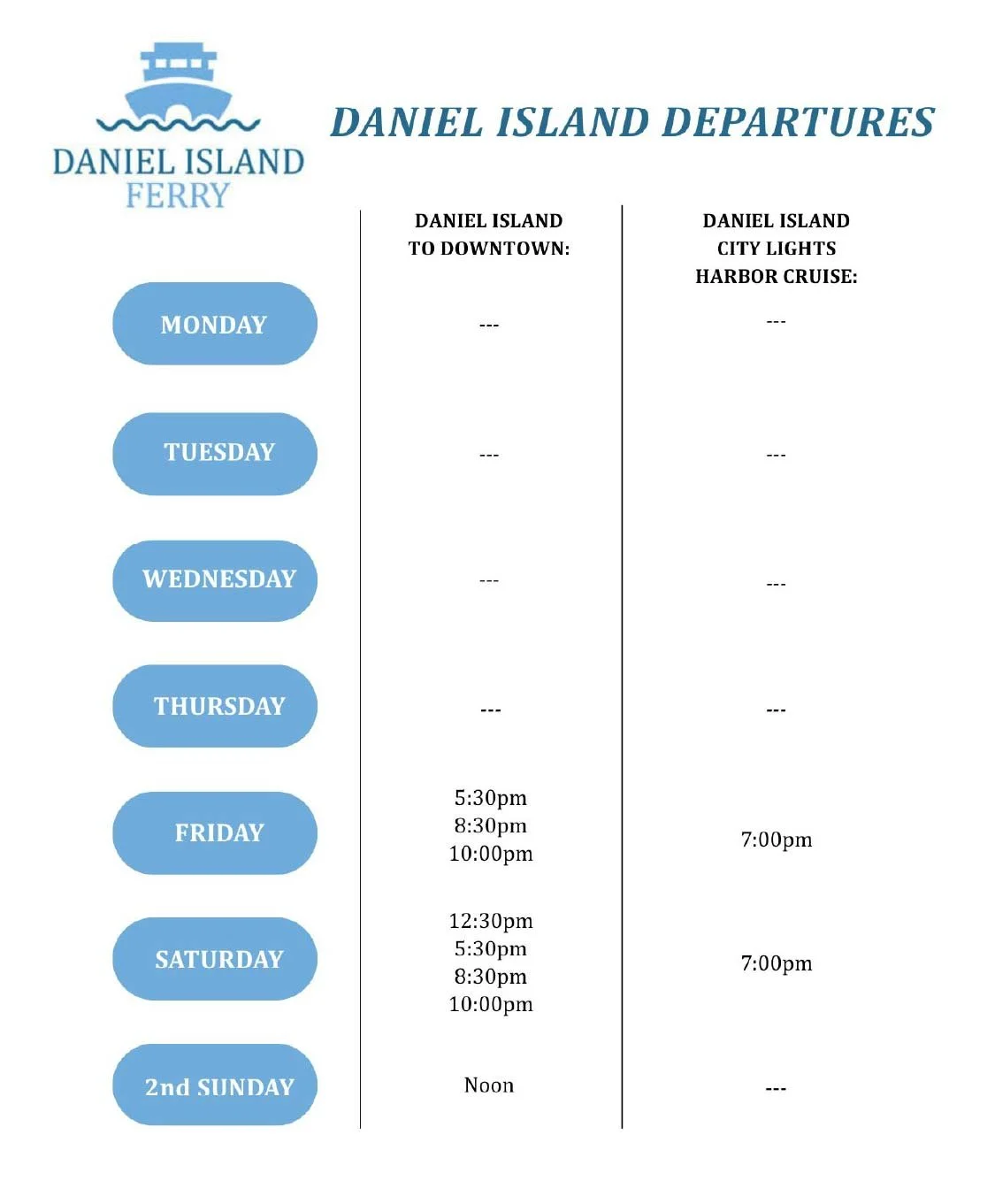 ⛴️ Connecting Downtown Charleston & Daniel Island ☀️ Ferry • Harbor Cruises • Private Charters